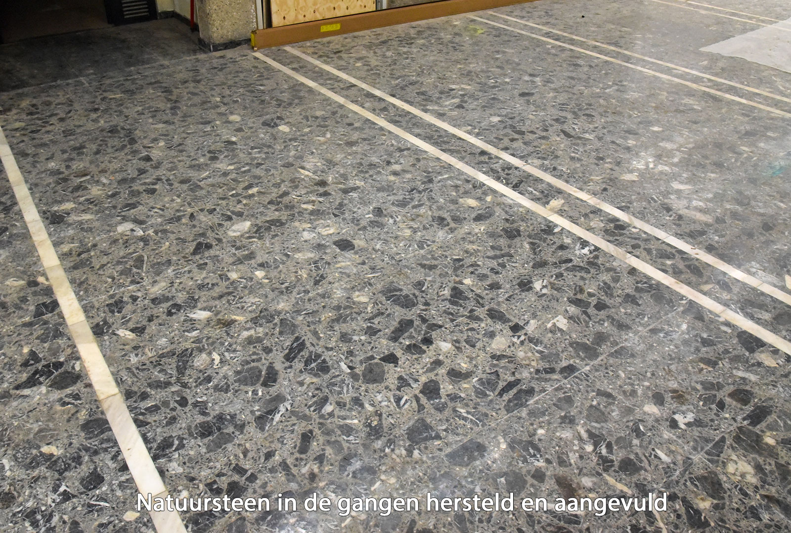 Het opnieuw polijsten was volgens Marius geen punt. ‘’We hebben de plinten iets verdiept zodat de nieuwe stukken beter ingepast konden worden. Het was eerst niet meer verkrijgbaar, maar met wat zoekwerk is het toch gelukt bij BGI uit Volendam. Het oogt iets lichter dan het origineel, maar als straks het geheel in gebruik wordt genomen verwachten we dat het mettertijd meekleurt.”